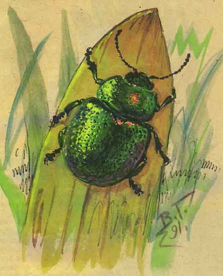 Возле нашего бивака жук-листоед вскарабкался на травинку. Потоптавшись на ее вершине, приподнял надкрылья изумрудно-зеленого цвета, с трудом выпростал из-под них слежавшиеся за ночь прозрачные, будто целлофановые, крылья и грузно полетел над росистой травой. Я вылезаю из-под отсыревшего одеяла: пора будить Сергея.