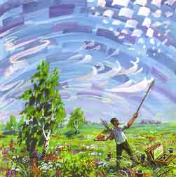 Странный сон приснился мне под утро. Стою я будто у холста огромной панорамы, изображающей степь. На палитре у меня — масляные краски, в руке — длинная-предлинная кисть. Я смешиваю темную лазурь с белилами, и получается голубой цвет, но краски какие-то тугие, неподатливые, словно резиновые, и перемешиваются с трудом. Но почему я здесь? Ведь эти громадные холсты, декорации, краски, живопись — все это было давно-давно, я уже много лет как энтомолог, — неужели кто-то все перепутал? Наконец, голубой цвет готов, примерно тот, что мне нужен; приближаюсь к панораме — а холст далеко-далеко — и накладываю мазки на уже голубое небо... Однако небо хоть и написано на холсте, но оно — настоящее, высокое, и все то, что на этой панораме: горизонт, степь, травы — тоже все настоящее. Мне поручено сделать панораму лучше, освежить, подправить, дописав ее масляными красками, но ведь степь и небо — это часть мира, это весь мир, вся природа. А красок мало, да они какие-то неяркие, полузасохшие.