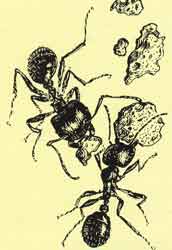 Ну а чтобы закончить рассказ о муравьях нашего Двора, нельзя не упомянуть о крохотных Мономбриум Фарабнис, или, по-простому, домовых муравьях. В нашу страну они попали в незапамятные времена невесть какими путями, скорее всего с продуктами, доставлявшимися морем; теперь они живут почти во всех городах страны — тепло в домах постоянное, еды — вдоволь, убежищ — тем более. Жили тогда они и у нас в доме, надоедая порой изрядно: то дорожка из крохотных этих созданий тянется из щелочки в подоконнике или стенке к банке с повидлом, то сваренный со всеми предосторожностями суп оказывается изрядно «заправленным» мурашами; мер борьбы с ними отец так и не придумал, ну а я такой «приправой» вовсе не брезговал...