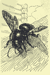 Именно долота: найдя очень старую и не очень прочную деревянную деталь постройки, пчела-плотник начинает делать гнездо. Выгрызая древесину с громким хрустом, она работает попеременно то левой, то правой «стамеской» ; опилки же выбрасывает, захватив их обоими жвалами. Ход, диаметром с палец, сначала идет горизонтально, затем круто забирает вниз, и «шахта» эта глубиной сантиметров восемь-десять. Затем трудолюбивая плотничиха летит за пищей для личинок — пыльцой с цветков белых акаций и других цветущих деревьев; бывало, что иное одетое в белоснежный душистый наряд акациевое дерево издавало мощное, издалека слышимое, гудение. Это у его цветущих гроздьев вился добрый десяток громадных черно-фиолетовых насекомых; сейчас такой картины не увидишь: ксилокопам в панельных и каменных домах гнездиться негде, а старые и мертвые деревья тут же убирают. Одна (всего лишь!) ксилокопа попадалась мне под Новосибирском, на клеверном поле - доставала пыльцу, разрывая узкие венчики клеверных цветков; зато эти цветки — я их пометил — дали полновесные семена.