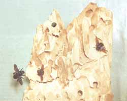 У меня в музее хранится еще один экспонат — большой кусок старого тополя, сплошь источенный ксилокопами. Правда, он не из Крыма, а из Тувы, но вид ксилокоп — тот же. По фотографии можно судить об объемах работ этих замечательных трудяг.