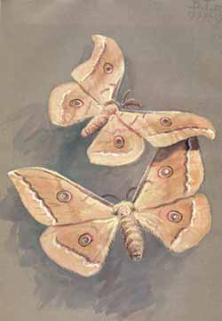 Вообще я рос стеснительным мальчиком. Но захватившая всего меня страсть к Живому привела меня — самого, без матери! — на кафедру зоологии крымского пединститута (сейчас — университет), где в моем полном распоряжении были и цейсовские золоченые микроскопы, и книги-определители, и коллекции насекомых, и специальные «запущенные» аквариумы с инфузориями и водорослями, а заведующий кафедрой, высокий лысый дядечка — профессор В. М. Боровский, проходя мимо меня, уткнувшегося в микроскоп или книгу, поощрительно похлопывал меня по плечу. Зачастил я и на Крымскую станцию защиты растений, главный энтомолог которой — Е. А. Херсонская хвалила мои рисунки насекомых и водила в сады развешивать пакетики с трихограммой — крошечными наездничками, истребляющими яйца бабочек-плодожорок. На шелковой фабрике очень благожелательные тетеньки в белых халатах дарили мне белые коконы с живыми куколками и большущие коконищи охристо-желтоватого цвета. Из маленьких коконов у меня дома вылуплялись небольшие белые бабочки шелкопряды, а из больших — ширококрылые бабочки-сатурнии кремового цвета; в середине каждого крыла был для чего-то стеклянно-прозрачный глазочек, окруженный красивой круглой каемкой. Из коконов этих бабочек, которые называются большой дубовый (или китайский) шелкопряд, вырабатывали чесучу — прочнейший шелк, который шел для изготовления парашютов. Было странно, что такие великолепные большекрылые сильные насекомые совсем не умели или не хотели летать и, даже подброшенные, грузно падали на пол. Сейчас их разводить перестали: кокон трудно разматывается, да и искусственных шелков напридумывали много. А жаль! Какой интересный познавательный материал для тех же станций юннатов дали бы эти крупные, смирные и красивые бабочки.