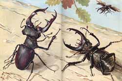 Трупы жуков-оленей (с короткими жвалами — самки) заготовленные для «наглядных пособий» профессиональным энтомологом-охотником.