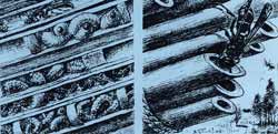 А по ту сторону стены, у застрех тростниковой крыши, весь день шла разнообразная и неутомимая работа: небольшие изящные осыодинеры носили в отверстия тростинок парализованных ими гусениц на прокорм своим личинкам; пчелкилисторезы доставляли сюда, тоже в тростинки соответствующего диаметра, зеленые «стеноблоки», пчелыантидии — комочки пуха для ячеек, пчелкиосмии — порции глины для тех же целей; тут же вились различные «кукушки» мира насекомых, ожидающие удачный момент, чтобы в отсутствие хозяина подсунуть яичко в ту или иную ячейку. Это были и осыблестянки, сверкающие всеми цветами радуги, и паразитические пчелы нескольких видов, и тощие, странного облика, наездникигастерупции с длиннейшим хвостомяйцекладом. А на чердаке устроили обширные гнезда общественные осыполисты, и гнезда эти, отличавшиеся тем, что имели лишь однослойный сот с открытыми ячейками, обращенными вниз, сильно напоминали корзинки подсолнуха с вылущенными семечками. Ну и, конечно же, огромное количество насекомых слеталось на свет керосиновой лампы, которую я вечерами ставил в комнате поближе к оконному стеклу.