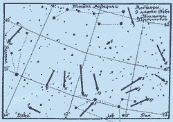 Увлекшись в юности еще Небом, специализировался на наблюдениях метеоров. Одна из звездных карт с нанесенными на нее траекториями метеоров.