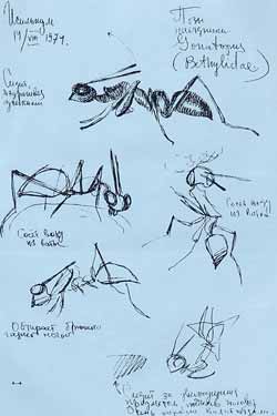 Наброски с живых насекомых я делаю шариковой ручкой, стараясь за несколько секунд передать позу и «характер» насекомого.