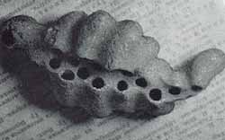 Старый обломок гнезда пчел галиктов. Видны входы в каморки, часть вертикальной шахты (длинное углубление).