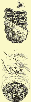 Совсем иначе действует старое осиное гнездо, хотя размер и форма его ячеек очень близки к пчелиным. Но здесь и существенная разница: материал ячей, в отличие от восковых сотов, более рыхлый и микропористый — это бумага (кстати, бумагу первыми изобрели осы, а не люди: скоблят старые древесные волокна и смешивают с клейкой слюной), стенки ячей много тоньше пчелиных, расположение и размер сотов — тоже иное, да еще и внешняя оболочка, тоже из бумаги, в несколько слоев, с промежутками между ними. Ко мне поступали сообщения об очень неблагоприятном воздействии нескольких осиных гнезд, построенных на чердаке. Да и вообще большинство многоячеистых устройств и объектов, обладающих сильно выраженным ЭПС, в первые минуты или часы на людей действуют далеко не благотворно; соты медоносной пчелы — одно из немногих исключений.