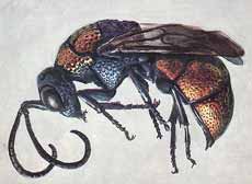 Разгадка пришла много лет позднее, когда пчелоград в Камышловской долине погиб: пашня подступила к самому обрыву, который из-за этого обвалился, и теперь там не только ни норки, ни травинки, но и огромная гнуснейшая свалка. У меня осталась лишь горстка старых глиняных комков — обломков тех гнезд — с многочисленными каморками ячейками. Ячейки были расположены бок о бок и напоминали маленькие наперстки, или, скорее, кувшинчики с плавно сужающимися горлышками; я уже знал, что пчелы эти относятся к виду Галикт четырехпоясковый — по числу светлых колечек на продолговатом брюшке.