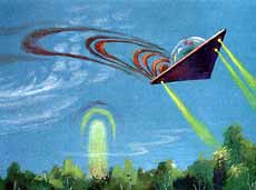 И осенила меня как-то мысль: уж очень похожи результаты моих опытов с насекомьими гнездами на сообщения людей, побывавших невдалеке от... НЛО. Вспомните и сопоставьте: временный вывод из строя электронных приборов; «фокусы» с часами — то есть со временем; невидимая упругая «преграда»; временное уменьшение веса предметов; чувство уменьшения веса человека; фосфены — цветные подвижные «картинки» в глазах; «гальванический» вкус во рту... Обо всем этом вы, несомненно, читали в «энэлошных» газетных и журнальных статьях — почти все это можно увидеть и испытать на себе в нашем Музее. Приезжайте!