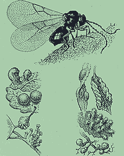 А эта насекомья тайна пока не разгадана: от укола орехотворкой листа или стебля на них вырастают домики удивительных форм для личинок.
